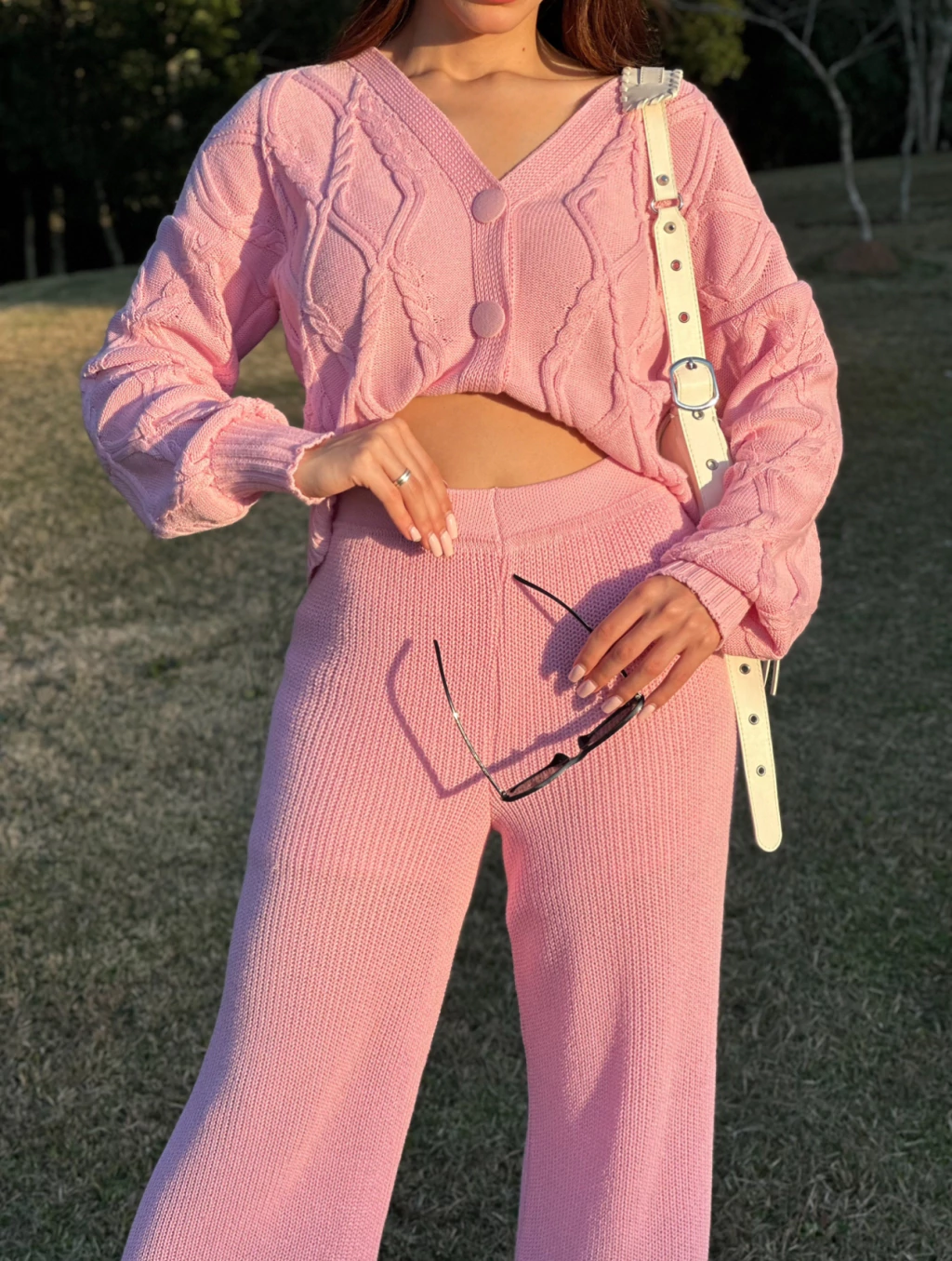 - Conjunto em tricot de alta qualidade;
